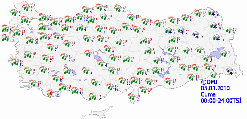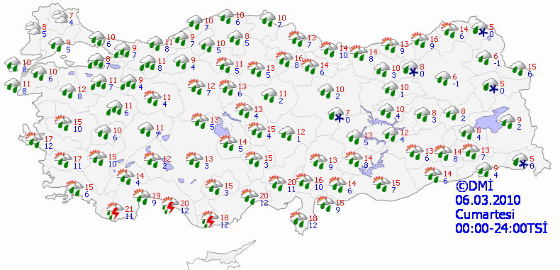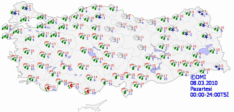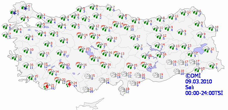 Yapılan son değerlendirmelere göre; Ülkemiz genelinde görülecek yağışların; sabah saatlerinde Kocaeli, Sakarya, Yalova, Balıkesir, Bursa, Bilecik, Kütahya ve İstanbul Anadolu Yakasında, öğle saatlerinden sonra ise Isparta, Kahramanmaraş, Malatya, Elazığ, Erzincan, Tunceli, Bingöl ve Muş ile Antalya'nın doğu ilçelerinde kuvvetli olması tahmin ediliyor.