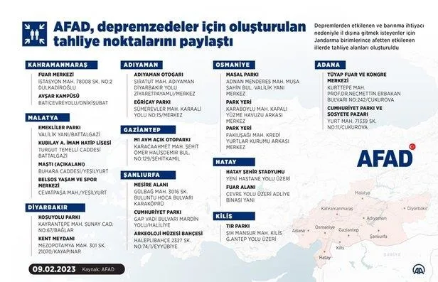Başkan Erdoğan dün depremin merkez üssü Kahramanmaraş ve Hatay'a gitti. Hatay'da incelemelerde bulunan Erdoğan daha sonra Adana'ya geçti. Erdoğan bölgelerdeki çalışmaları yerinde incelerken vatandaşla kucaklaşıp, "Kimseyi sahipsiz bırakmayacağız" mesajı verdi. Erdoğan, daha önceki depremleri hatırlatarak, "Bütün buralardaki depremleri nasıl atlattıysak hiç endişe etmeyin bundan da kısa sürede kurtulacağız. Tabii ki ölenlerimiz hepimiz için ciğerparelerimizdir." dedi. Başkan Erdoğan Gaziantep'te incelemelerde bulunuyor. Erdoğan, Gaziantep'in ardından Osmaniye'de incelemelerde bulundu.