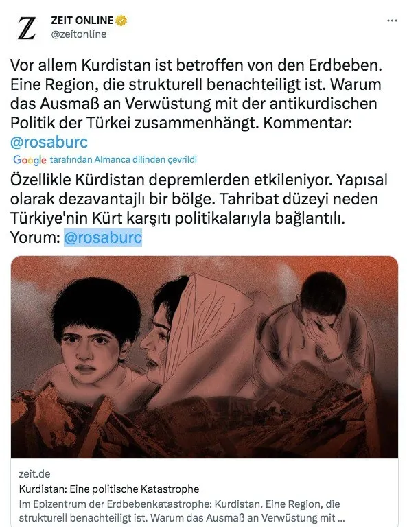 Almanya'da internet üzerinden yayın yapan ZEIT Online da provokasyona 'bölücülük' üzerinden destek çıktı.