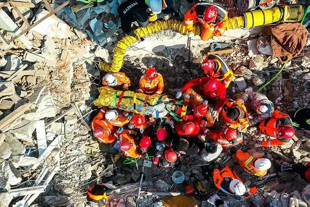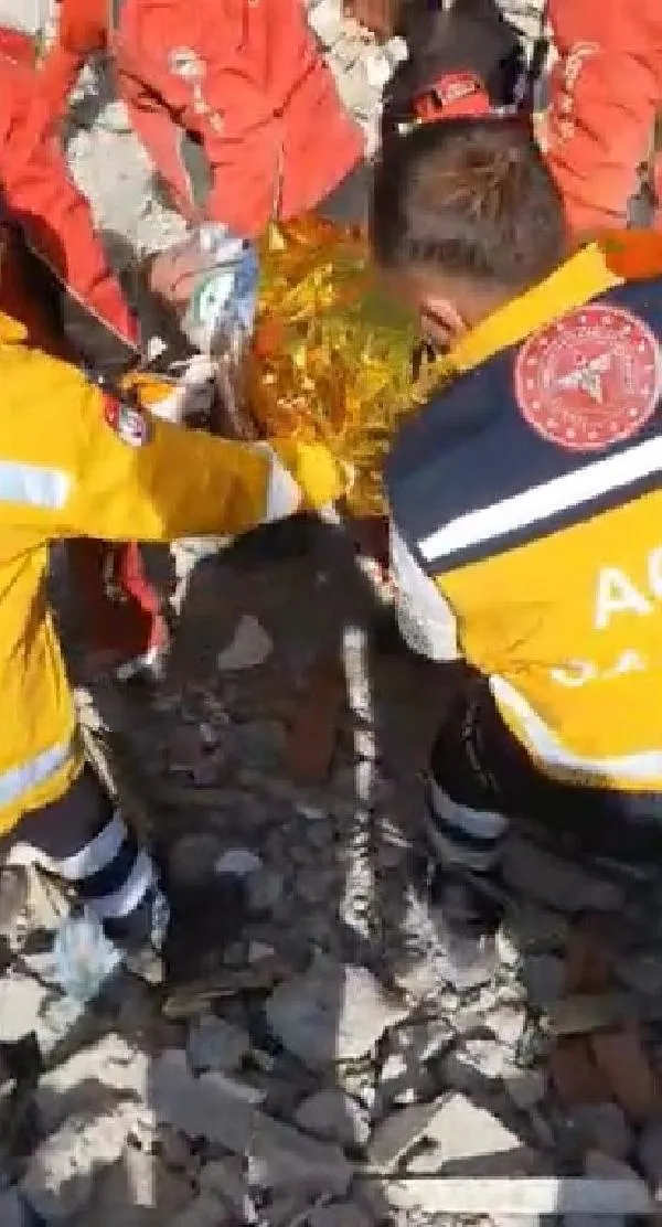 Arama kurtarma görüntüleri de paylaşıldı. Görüntülerde arama kurtarma ekibinin bir kadını alkışlar eşliğinde çıkarması ve sağlık ekiplerine teslim etmesi yer aldı.