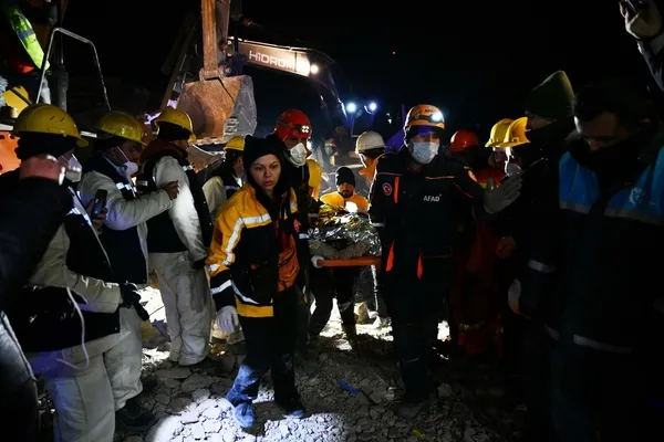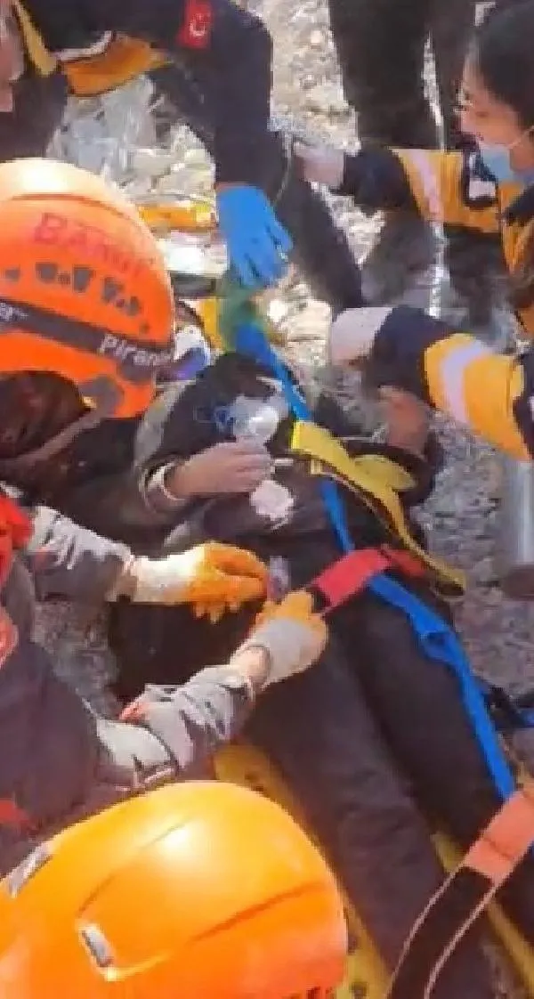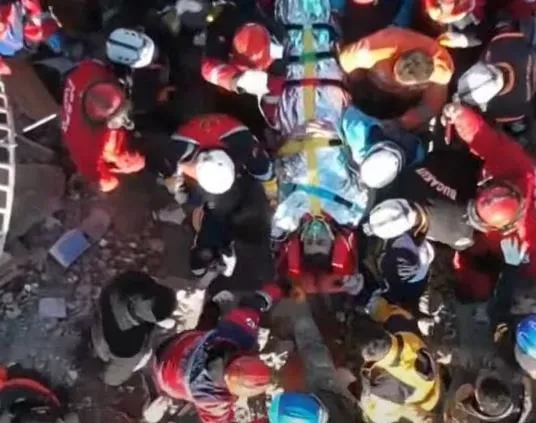 Hatay'ın Antakya ilçesinde yıkılan Fatih Apartmanı'nda çalışma yapan AFAD, jandarma ve çok sayıda sivil toplum kuruluşuna bağlı arama kurtarma ekipleri, depremin 159. saatinde 55 yaşlarındaki kadını kurtardı. Enkazdan çıkarılarak sedyeye alınan kadın, önce el salladı, daha sonra da kendisini kurtaranların elini tuttu.
