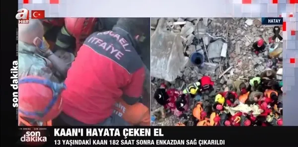 İsminin Kaan olduğu öğrenilen 12 yaşındaki çocuk, depremin 182'nci saatinde binanın enkazından kurtarıldı.