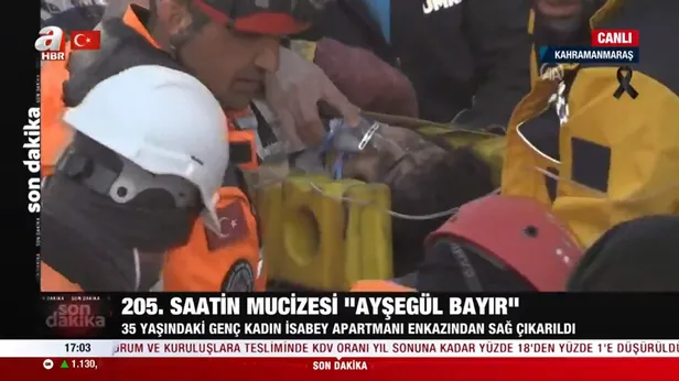Kahramanmaraş'ta İsabey Apartmanı'nın enkazından 35 yaşındaki Ayşegül Bayar depremin 205. saatinde kurtarıldı.