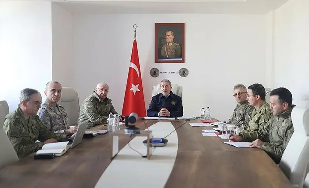 Deprem bölgesindeki birliklerin komutanlarının da katıldığı toplantıya, depremin hemen ardından geldiği ve Mehmetçiğin bölgedeki nöbet, devriye, arama kurtarma ile yaşam destek faaliyetlerini ilk günden itibaren yerinde takip ettiği Hatay'ın Serinyol ilçesindeki 8. Komando Tugay Komutanlığından beraberindeki Genelkurmay Başkanı Güler ile katılan Akar, sahadaki son durum ve çalışmalara ilişkin bilgi aldı, talimat verdi.
