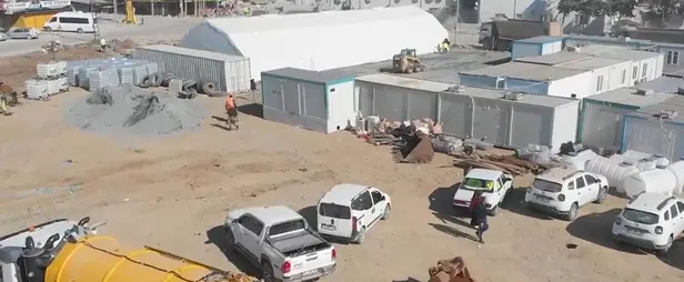 Çalışmaların büyük bir hızla sürdüğü konteyner kentte 89 personel ve 34 iş makinesi, 7/24 vardiyalı görev yapıyor.