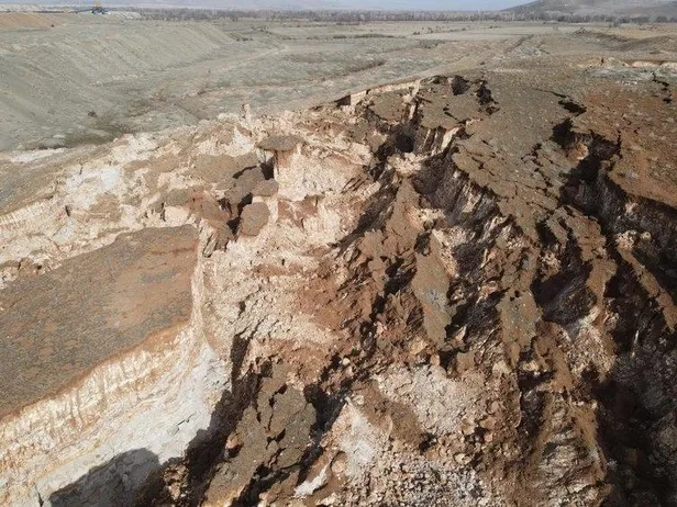 Fay hattı kırsal bölgedeki arazide hem devasa bir göçük oluşturdu, hem de derin yarıkları ortaya çıkardı.