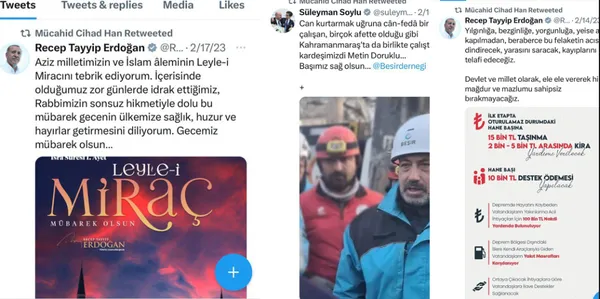 Söz konusu dolandırıcı Mücahid Han, sadece dini değil aynı zamanda siyaseti de kirli emellerine alet ediyor. Kendisini AK Partili göstermeye çalışan Mücahid Han, gerek Başkan Erdoğan'ın gerekse İçişleri Bakanı Süleyman Soylu'nun paylaşımlarını retweetleyip algı operasyonunu başka boyuta taşıyor. Beğeni ve RT'leri gören muhalif isimlerin AK Parti'yi hedefe koymasına neden oluyor.