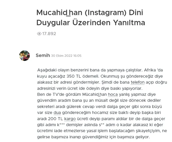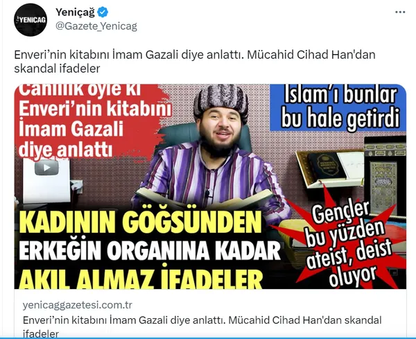 Mücahid Han isimli hem dini hem de maddi dolandırıcının videoları, şu sıralar laik ve kemalistleri tahrik malzemesi malzemesi yapılıyor. Asrın felaketinde bile söz konusu skandal videoları paylaşıp tüm Müslümanları aynı kefeye koyup saldırıdan çekinmiyorlar.