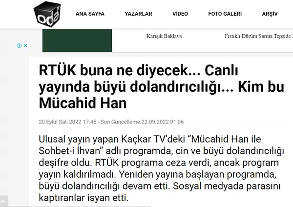 RTÜK "Mücahid Han ve Diğerleri" isimli programın dini istismar ettiğine ve insanları sömürdüğüne karar verip yerel kanala bir yaptırım uyguladı. Fakat Mücahit Han hâlâ insanları sömürmeye devam ediyor.
