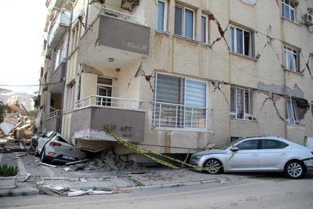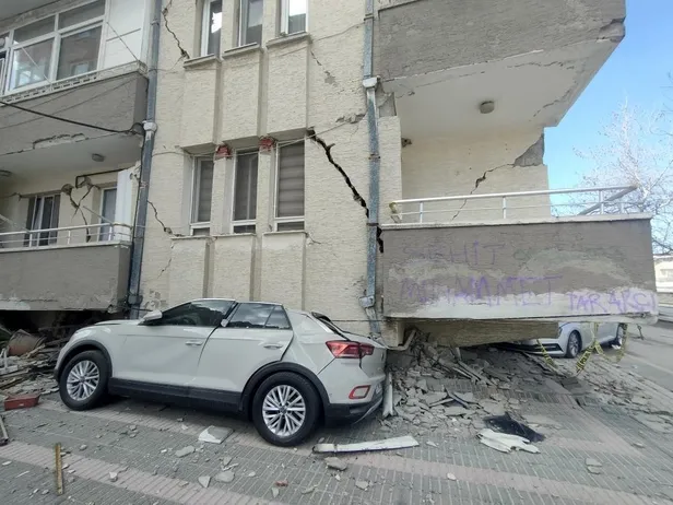 Kahramanmaraş merkezli 7.7 ve 7.6'lık depremlerin büyük yıkıma yol açtığı Hatay’da, 50 kişinin yaşadığı binanın yıkılmasını park halindeki 5 otomobil önledi. Zemine çöken ve hasar gören binadan iş insanı İsmail Gürler ve ailesi balkondan sarkıttıkları battaniyeler ile tahliye oldu.