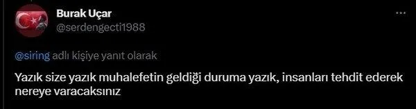 Açıkça AK Parti'yi destekleyenleri tehdit eden Payzın, "Troller için de hazin durum. Son 2 ay, sonra uğraş dur" ifadelerini kullandı.