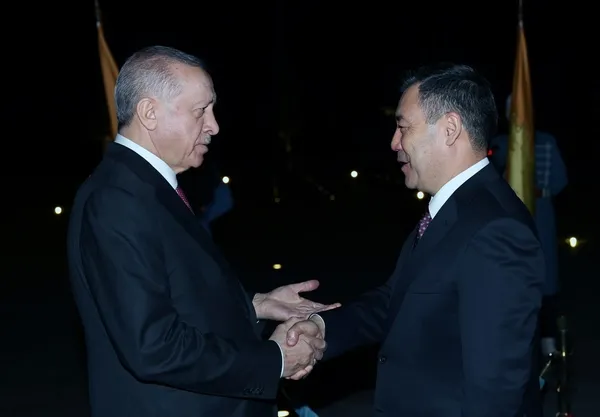 Başkan Recep Tayyip Erdoğan, liderlerle buluşmasında son olarak Kırgızistan Cumhurbaşkanı Sadır Caparov ile bir araya geldi.