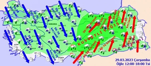 Listede yer alan illerde kuvvetli rüzgar, sağanak, kar yağışı ve karla karışık yağmur bekleniyor.