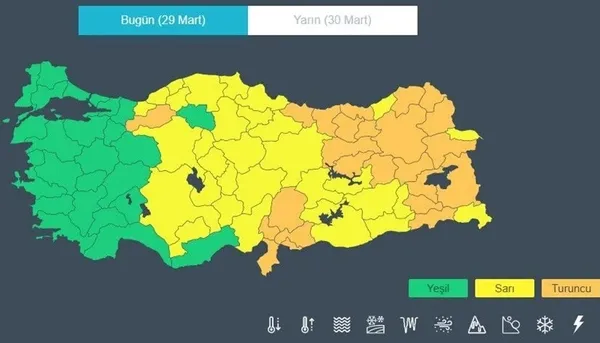 56 İL İÇİN SARI VE TURUNCU UYARI