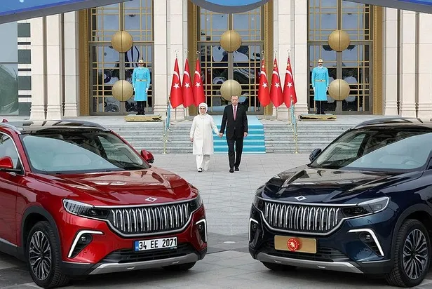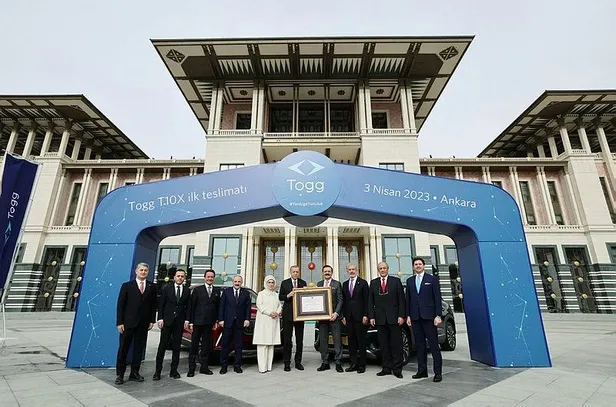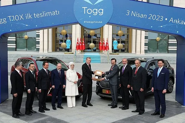 Sanayi ve Teknoloji Bakanı Mustafa Varank ile Togg'un ortağı "babayiğitler", Başkan Erdoğan ve eşi Emine Erdoğan'a hayırlı olsun dileklerini iletti. Erdoğan ve eşi Emine Erdoğan'a içinde araçlara ait anahtar ve ruhsat ile kolonya ve kestane şekerinin yer aldığı kitler teslim edildi.