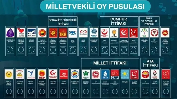 İttifak yapan partiler, oy pusulasında "ittifak" unvanları altında yan yana yer alacak. Partilerin logoları, isimleri, genel başkanların adları ile partiler için ayrılan her sütunun altında, milletvekili adaylarının isimleri de belirtilecek.