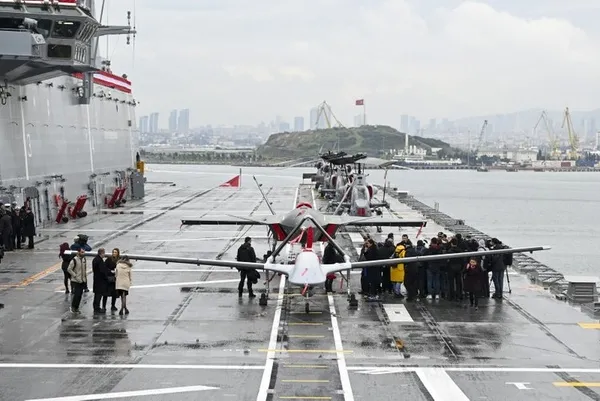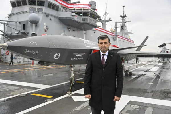 Baykar Yönetim Kurulu Başkanı ve Teknoloji Lideri Selçuk Bayraktar, törenin ardından geminin uçuş güvertesinde yer alan Bayraktar Kızılelma ve Bayraktar TB3 SİHA önünde değerlendirmelerde bulundu.