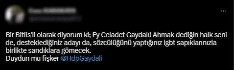 Gaydalı'nın bu sözleri Bitlisliler başta olmak üzere vatandaşlardan büyük tepki çekti.
