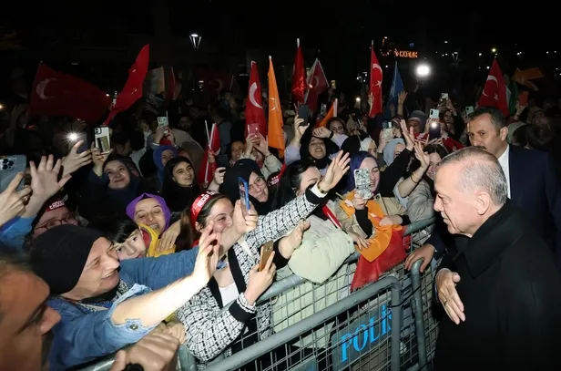 Erdoğan, kendisine sevgi gösterisinde bulunan vatandaşlara aracından el sallayarak karşılık verdi.