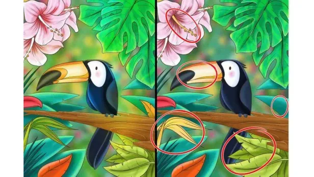 Yukarıdaki görüntü, muhteşem bir ağaç üzerinde oturan sevimli bir tukanın iki resmini içermektedir. İlk bakışta, resimler neredeyse tamamen aynı gibi görünse de, aralarında toplam beş gizli fark bulunmaktadır. Şimdi gerçek bir meydan okuma zamanı! Gözlerinizi dört açın ve dikkatinizi resimlere odaklayın. 25 saniye boyunca tüm detayları inceleme fırsatınız var.