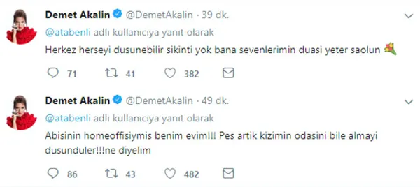 Okan Kurt'la 10 dakikada boşanan Demet Akalın, 'formaliteden boşandılar' iddialarına Twitter hesabından cevap verdi. Akalın, "Kızımın odasını bile almayı düşündüler! Ne diyeyim." sözleriyle boşanma nedenini de belli etti. İşte o paylaşım...