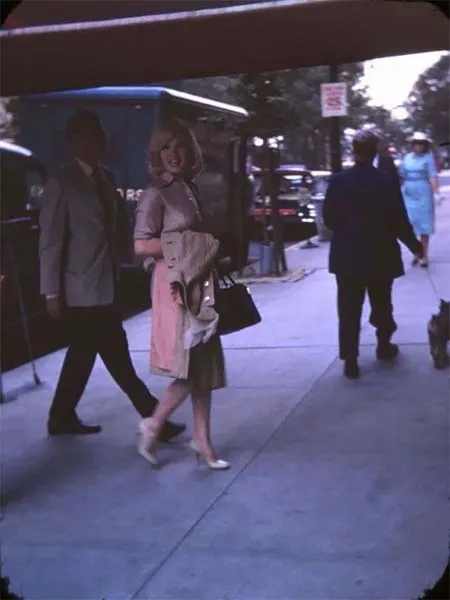 Arkadaşı Frieda Hull tarafından 8 Temmuz 1960'ta New York'ta Fox Stüdyoları dışında çekilen fotoğraflarda Marilyn Monroe, Clark Gable ve Montgomery Clift ile 'The Misfits' filminin kostümleriyle görülüyor.