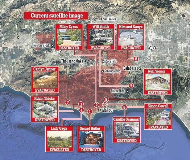 Gerard Butler, Miley Cyrus, Robin Thicke, Lady Gaga, Will Smith, Simon Cowell, Camille Grammer, Robin Thicke, Caitlyn Jenner, Kim Kardashian'ın toplam 250 milyon dolar (1.5 milyar TL) değerindeki evlerinden geriye hiçbir şeyin kalmadığı belirtildi.