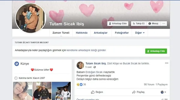 Acı haberi sosyal medya hesabından duyuran kızı Tutam Sıcak; Babam Erdoğan Sıcak'ı kaybettik. Perşembe günü defnedeceğiz. Detaylı bilgiyi daha sonra vereceğim' açıklamasını yaptı.