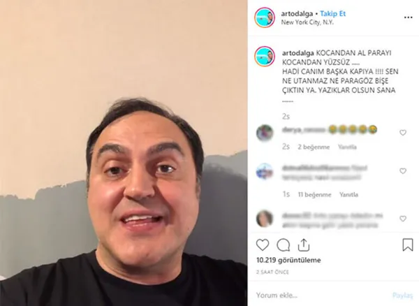 Arto sosyal medya hesabından yayınladığı videoda, "Kocasından alamadığı parayı benden alacak herhalde, hayatım onu kocandan alacaksın benden değil. Ona yıllarını verdin bana değil. O yüzden para varsa, parayı kocandan alacaksın, parayı benden almayacaksın. Git kocandan al hadi başka kapıya…" derken, paylaşımına "Sen ne paragöz bir şey çıktın" notunu düştü.