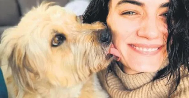 Güzel oyuncu ve şarkıcı, objektife poz verirken köpeği de onun yanağını yalamakla meşguldü. Subaşı, bu kareye "Ben de seni oğlum" notu düştü.