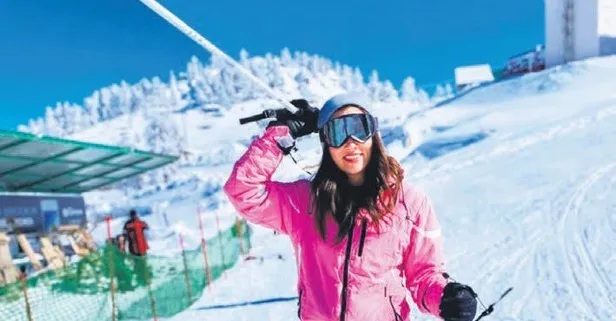 Zehra Yılmaz'dan Kartalkaya'da kayak keyfi