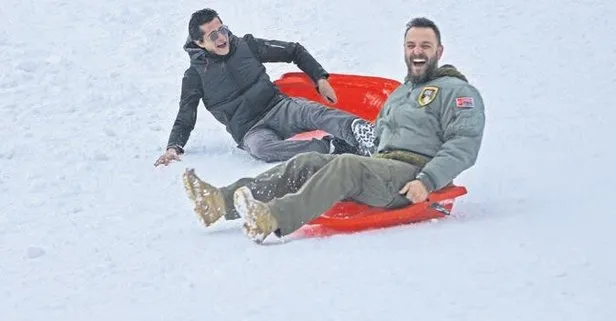 Ünlü oyuncular İsmail Hacıoğlu ve Ogun Kaptanoğlu'ndan Uludağ'da eğlenceli anlar