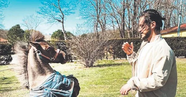 Başarılı oyuncu, dünyanın en küçük at ırkı olarak bilinen Falabella atıyla çocuklar gibi oynadı.