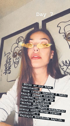 Herkes gibi evinde kalan Dilan Çiçek Deniz, dün neler yaptığını özetledi. Bütün evi dip köşe temizleyen 25 yaşındaki oyuncu, ekledi: "Annemin isteğiyle iki tatlı kaşığı pekmez içtim, koridorda kaykayla kaydım."