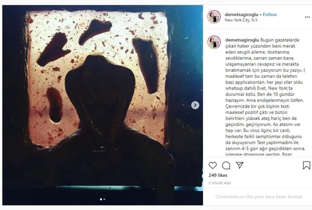 Ünlü sanatçı Demet Sağıroğlu'na koronavirüs şoku! Instagram hesabından paylaştı