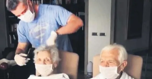 Virüs salgını nedeniyle kuaförler kapanınca iş başa düştü. Sadettin Saran, karantina günlerini birlikte geçirdiği anne ve babasının saçını kesti.