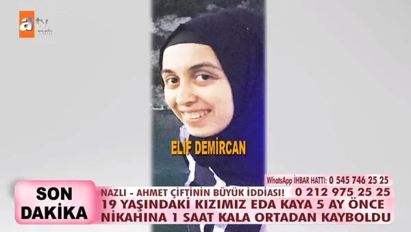 Atv Esra Erol'da canlı yayınına katılan Nazlı Hanım ve Ahmet Bey, kızlarının en son yakın arkadaşı Elif Demircan ile görüştüğünü iddia etti. İddiaya göre Eda Kaya ile Elif Demircan'ın arası çok iyiydi, öyle ki Eda Kaya, Elif'i öz ablası kadar yakın görüyordu.