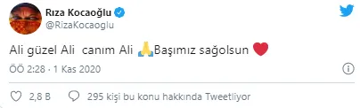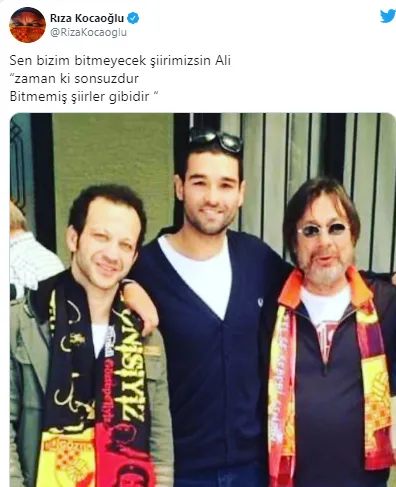Ancak Ali'den kötü haber geldi. Yaşamını yitiren Ali'nin haberini alan Rıza Kocaoğlu kahroldu. Rıza Kocaoğlu sosyal medya hesabından yaptığı paylaşım ile İzmir depreminde hayatını kaybeden arkadaşı Ali Çağın Kaygusuz'a seslendi... Ünlü oyuncu arkadaşıyla çekilmiş bir fotoğrafını "Sen bizim bitmeyecek şiirimizsin Ali... Zaman ki sonsuzdur... Bitmemiş şiirler gibidir" notuyla paylaştı.