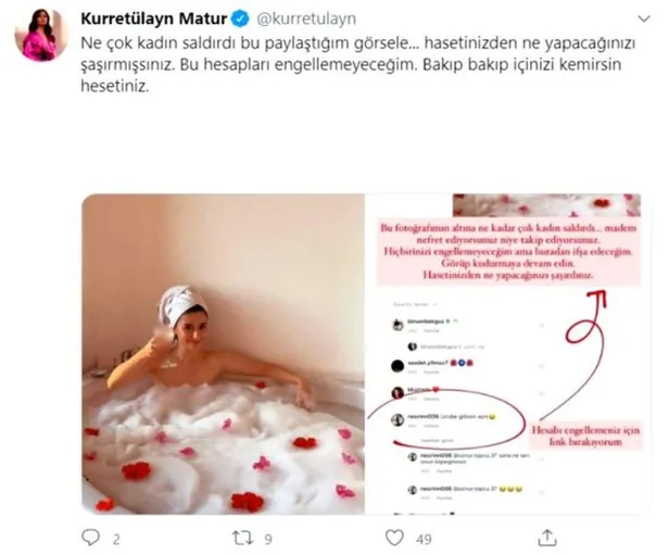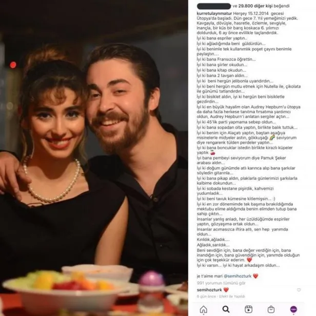 2014 yılından beri ilişkileri devam eden Semih Öztürk ile Kurretülayn Matur, 19 Haziran 2020'de evlenmişlerdi.Tatilden romantik karelerini sosyal medya hesaplarından paylaşan ikiliden Kurretülayn Matur'un verdiği küvet pozu tepkilere yol açmıştı.