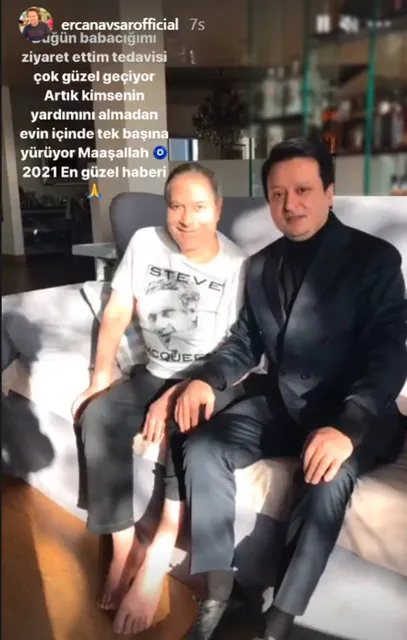 Mehmet Ali Erbil'i evinde ziyaret eden yakın dostu Ercan Avşar, sosyal medya hesabından birlikte fotoğraflarını paylaşıp "Bugün babacığımı ziyaret ettim. Tedavisi çok güzel geçiyor Artık kimsenin yardımını almadan evin içinde yürüyebiliyor... Maşallah" notunu düştü.