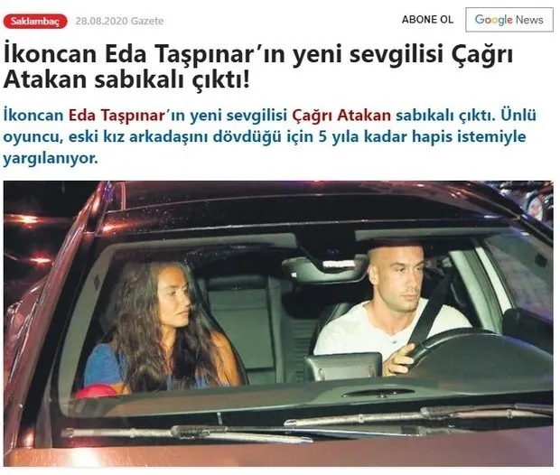 Çağrı Atakan'ın, eski sevgilisini darp ettiği gerekçesiyle yargılandığı ortaya çıktı. 39 yaşındaki ünlü oyuncu, geçtiğimiz yıllarda 27 yaşındaki tasarımcı Eda A. ile birliktelik yaşadı. Çift, bir müddet sonra ayrılmaya karar verdi. Ünlü oyuncu iddiaya göre Eda'nın evde olduğu bir an genç kadına telefonla "Bana bak seni mahvedeceğim, ağzına s.." şeklinde sözlerle hakaret ve tehdit etti. Eda A.'yı darp ettiği öne sürülen oyuncu hakkında beş yıla kadar hapsi istemiyle dava açıldı.