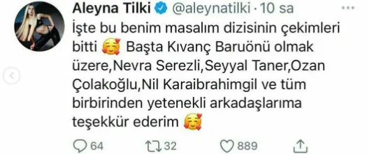 "İşte Bu Benim Masalım" dizisinin çekimleri sona erdi. Dizinin başrol oyuncuları Cemal Can Canseven ve Aleyna Tilki, ekip arkadaşlarına veda mesajı gönderdi.