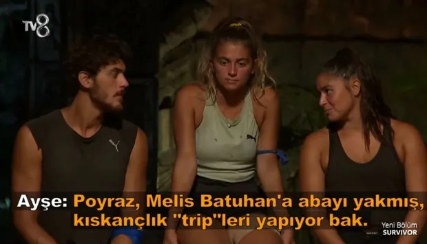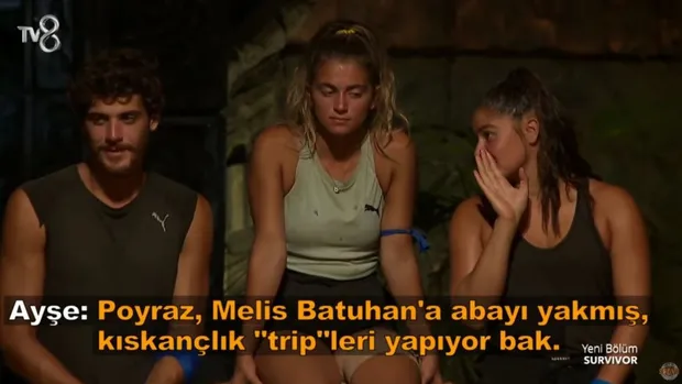 Survivor'da Batuhan, "Ben birleşme partisinden beri öyle entrikalar içerisindeyim, öyle tripler yiyorum ki haddi hesabı yok. Tribi neden yediğime dair bir fikrimde yok artık. O kadar garip bir haldeyim ki, cidden ne diyeceğimi bilmiyorum" sözlerini dile getirdi. Melis ise "O benim adadaki en iyi arkadaşımdı. Adada cidden oturup konuşabildiğim tek kişi o. Benim onunla sorunum yok" sözleri üzerine Ayşe öyle bir şey dedi ki, tüm ada karıştı.