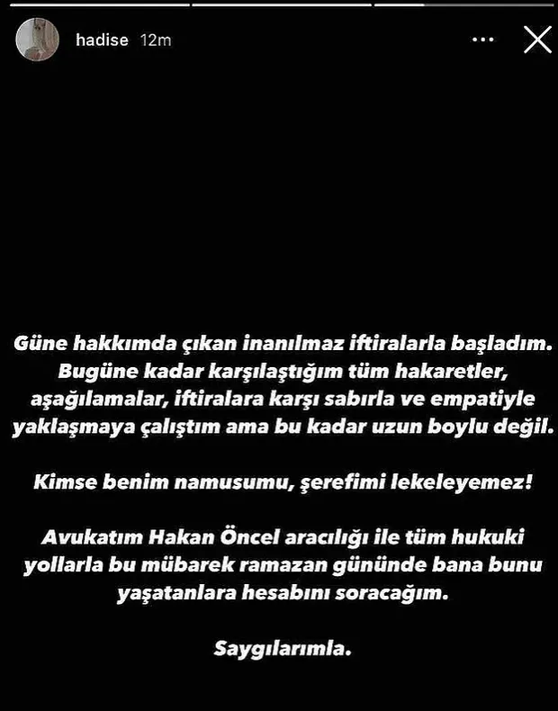 Bunun üzerine Hadise çok sert bir açıklamada bulunmuştu.