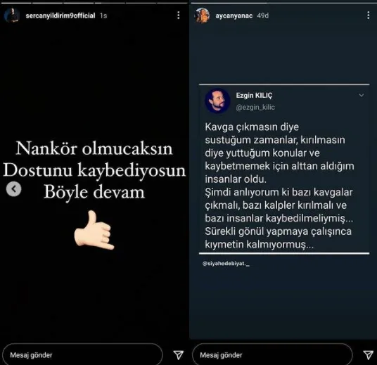 Hatta Survivor sonrası Sercan Yıldırım'ın kardeşi Tezcan Yıldırım dünyaevine girmiş, Aycan Yanaç da Sercan Yıldırım ve ailesini bu mutlu günde yalnız bırakmamıştı. Ancak herkesin aşk mı dostluk mu olduğunu bilemediği bu bağ bir anda koptu, kılıçlar çekildi.