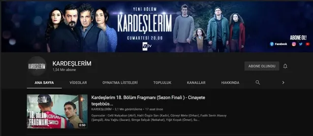 Atv'nin yapımına NGM'nin imza attığı başarılı oyuncu kadrosu ve etkileyici hikayesiyle Cumartesi akşamlarına damgasını vuran dizisi "Kardeşlerim"in sezon final tanıtımı izlenme rekorları kırıyor.
