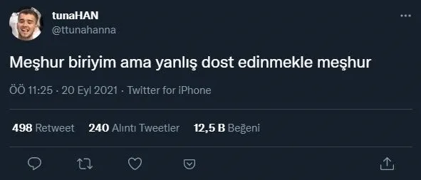 Tunahan Ak'ın, Sergen'in çok konuşulduğu olay sonrası attığı 'meşhur biriyim ama yanlış dost edinmekle meşhur' paylaşımı 'Sergen'e gönderme' olarak yorumlandı. Ancak gelin görün ki Tunahan Ak'ın paylaşımları bitmeyecek. Öyle ki bir paylaşım da yakın arkadaşı Tahsin Küçük'ün dokunulmazlık almasının ardından geldi.