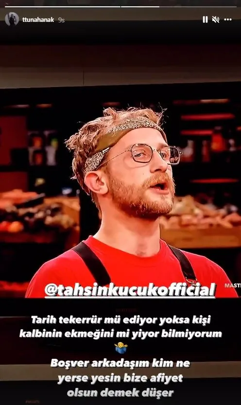 Jüri koltuğunda Danilo Zanna, Mehmet Yalçınkaya ve Somer Sivrioğlu'nun oturduğu Masterchef'in son bölümünde sürpriz bir veda yaşandı. Yarışmanın başından bu yana adından en çok söz ettiren isimlerinden biri olan Tunahan Ak yarışmaya veda etti. Yarışma boyunca olan umursamazlığı ve kendine güvensizliğiyle jürinin eleştiri oklarının da hedefi olan Tunahan Ak asıl bombaları elendikten sonra patlatmaya başladı. Yarışmada zaman zaman sivri çıkışlarıyla bilinen Tunahan Ak öyle paylaşımlar yapıyor ki ortalığı fena halde karıştıracak cinsten.