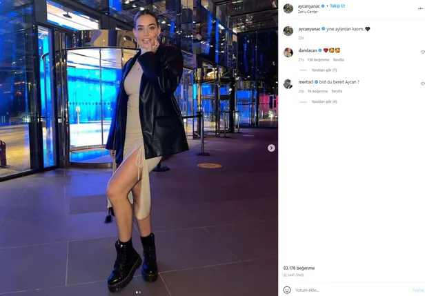 Derin yırtmaçlı elbisesiyle poz veren Aycan Yanaç "Yine aylardan kasım" notuyla da öne çıktı. Survivor Aycan'ın bu iddialı görüntüsüne ilk yorum yapanlardan biri de Mert Öcal oldu.