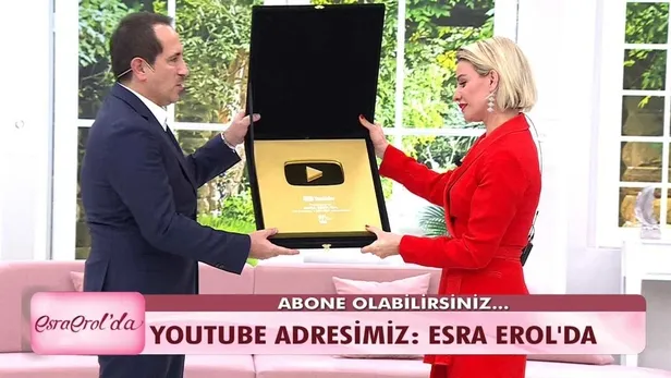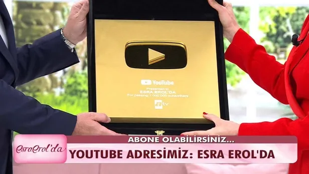 Başarılı sunucu Esra Erol'un sunumuyla ekrana gelen, reytinglere damga vuran Esra Erol'da programı başarısını dijital platforma da taşıyarak Youtube kanalında 1 milyona aboneye ulaştı. İzleyiciler tarafından yakından takip edilen, başarılarını ödüllerle taçlandıran Erol, bu defa da YouTube 1 milyon aboneyi simgeleyen plaketini aldı.